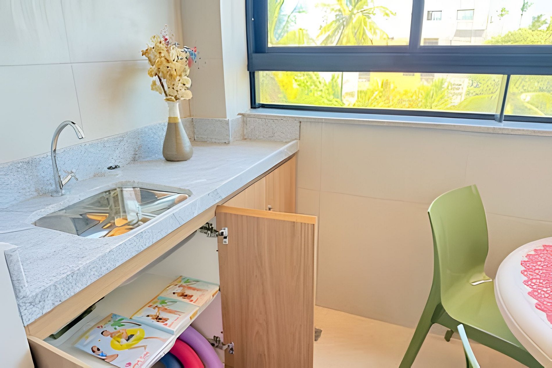 Temos máquina lava e seca, um grande diferencial que facilita muito para quem vem passar mais dias — principalmente com crianças.